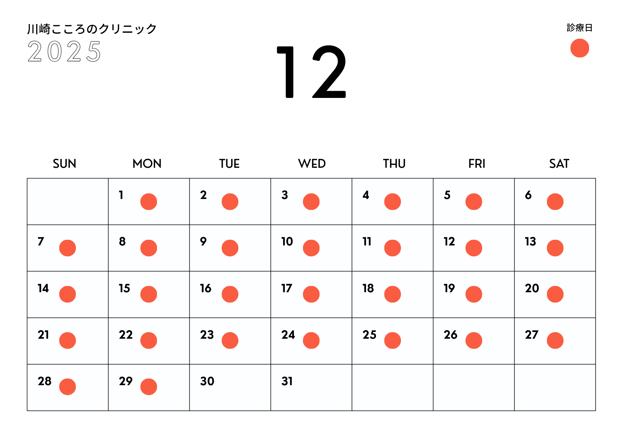 2025年12月の診療日について、ご案内申し上げます。