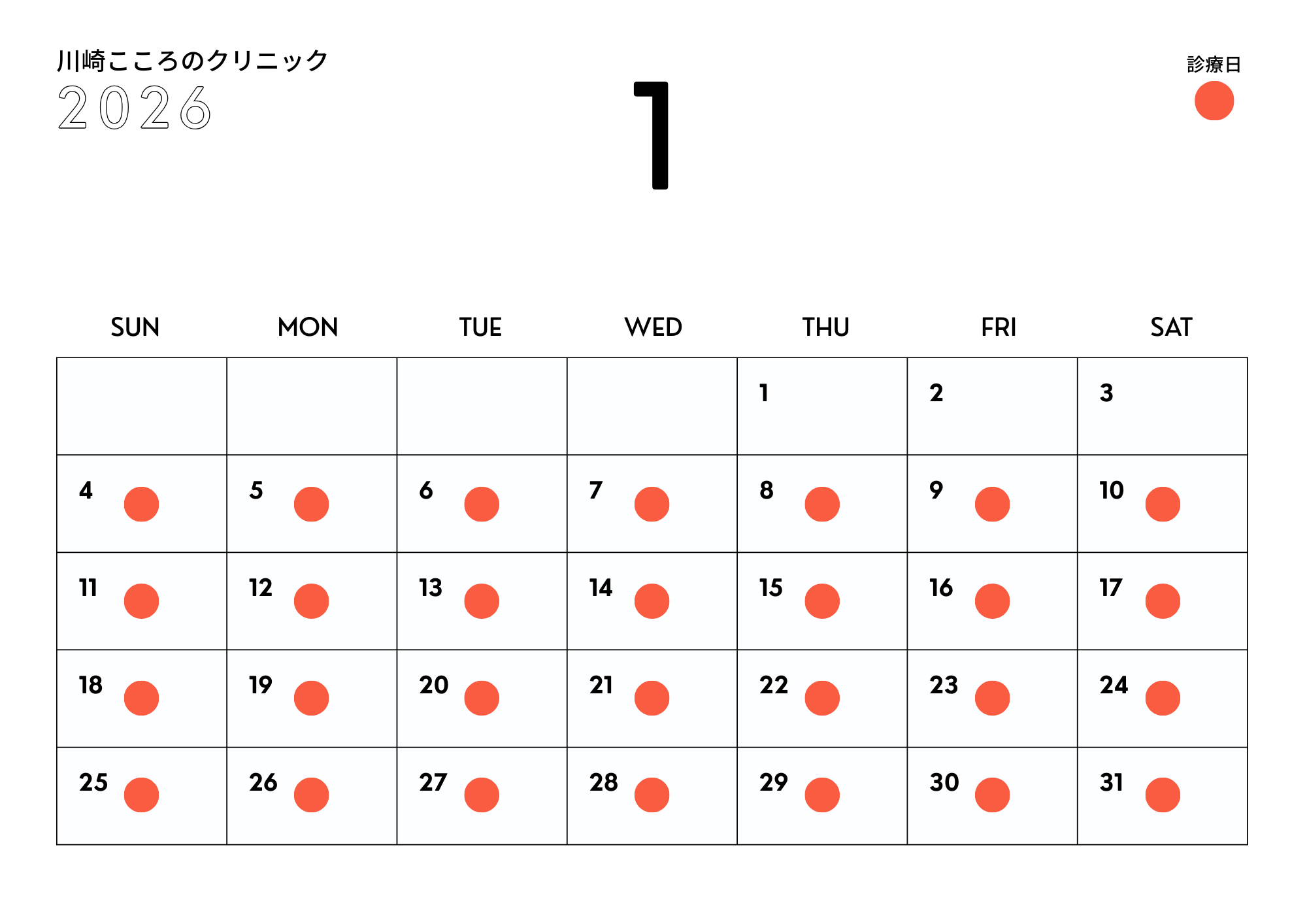 上記休診日を除く、月曜日から日曜日まで、休まず通常通り診療いたします。